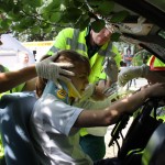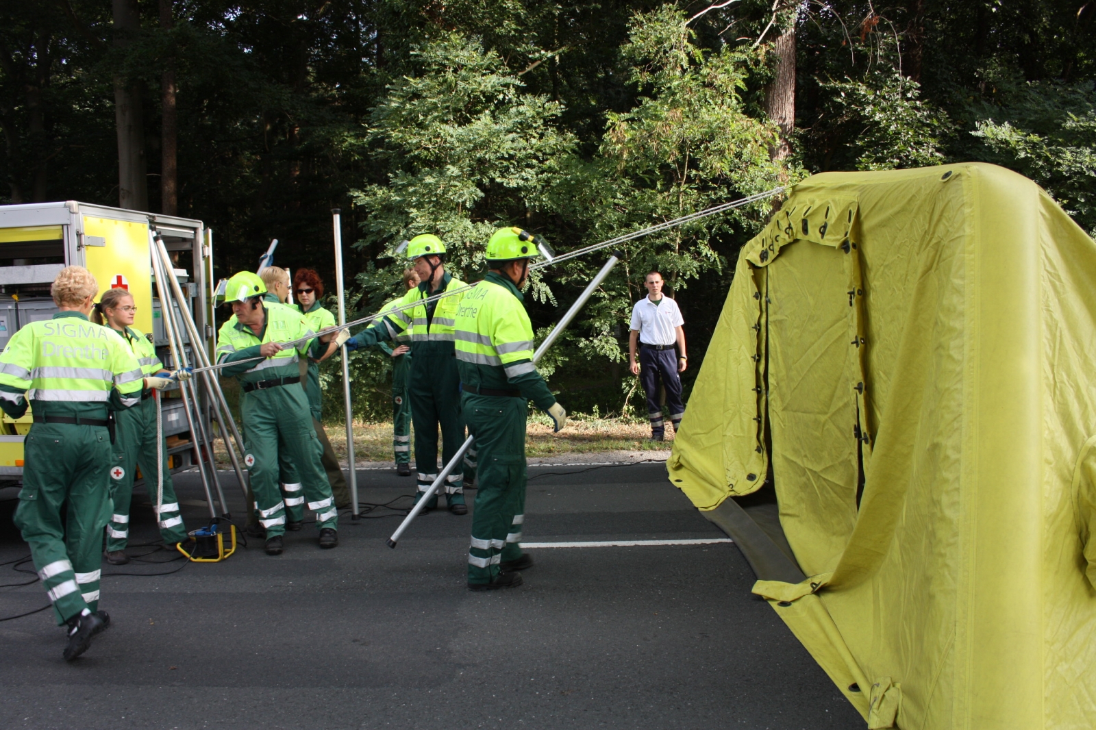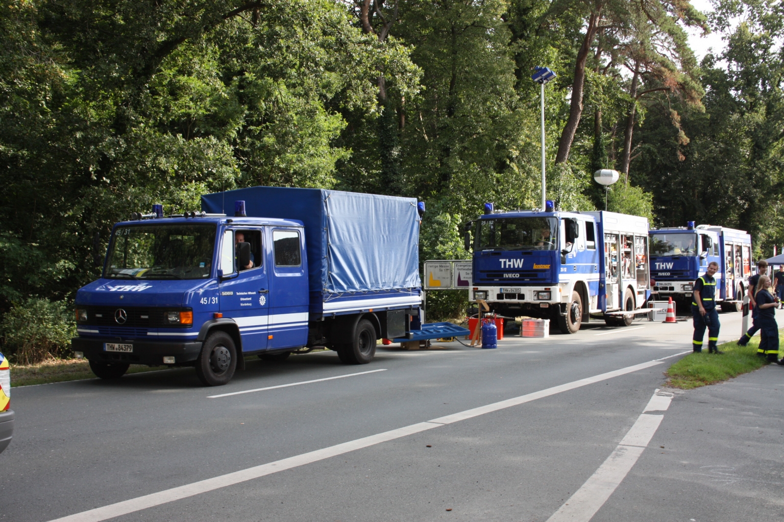 Hier hadden ze een zogenaamd “blaulichmeile” gemaakt. Dit houd in dat er een straat van blauwe lichten wordt gemaakt. Tijdens deze “meile” waren hun eigen voertuigen opgesteld, SIGMA uit Drenthe, THW uit Duitsland en de Bosbrandweer.